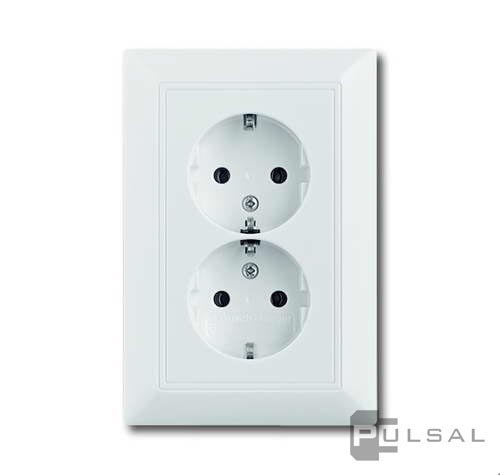 Розетка Basic 55, со шторками, с заземлением, двойная, безвинтовые клеммы, цвет - альпийский белый