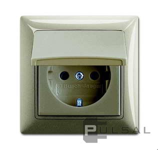 Розетка Basic 55, без шторок, с крышкой, с заземлением, одинарная, безвинтовые клеммы, цвет - шампань