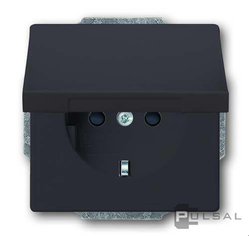 Розетка Carat, ДИНАСТИЯ, Busch-axcent, Future linear, без шторок, с крышкой, с заземлением, одинарная, безвинтовые клеммы, цвет - антрацит