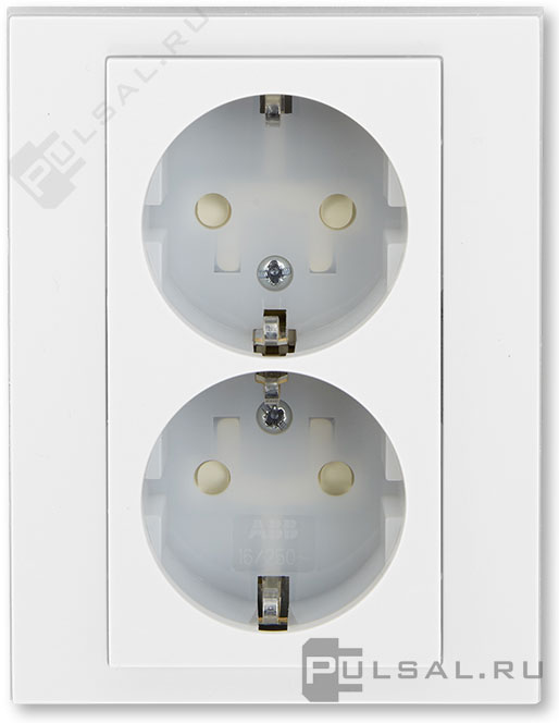 Розетка Levit, со шторками, с заземлением, двойная, безвинтовые клеммы, цвет - белый / ледяной