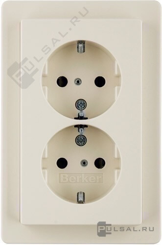 Розетка Q.1, Q.3, Q.7, со шторками, с заземлением, двойная, безвинтовые клеммы, цвет - бежевый бархат