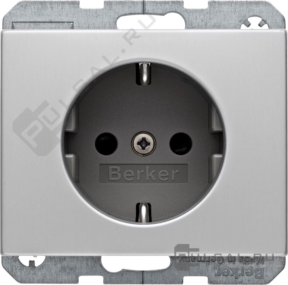 Розетка K.5, со шторками, с заземлением, одинарная, безвинтовые клеммы, цвет - алюминий