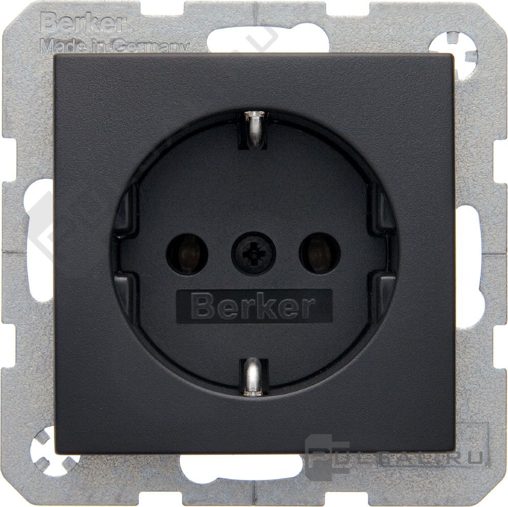 Розетка B.3, B.7, без шторок, с заземлением, одинарная, безвинтовые клеммы, цвет - антрацит матовый