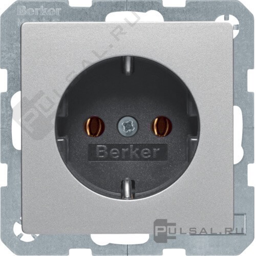 Розетка Q.1, Q.3, Q.7, без шторок, с заземлением, одинарная, безвинтовые клеммы, цвет - алюминий бархат