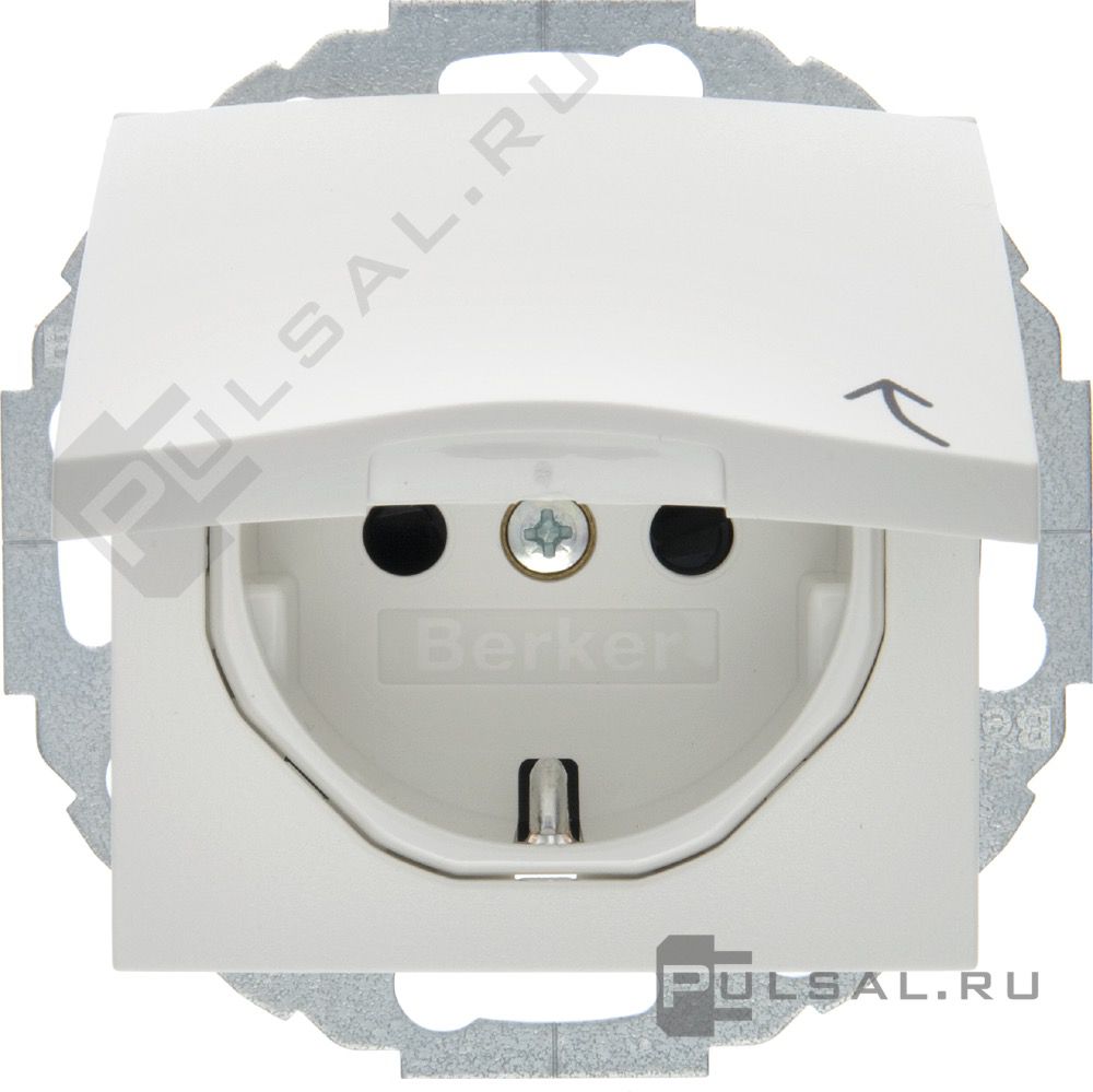Розетка (механизм внутри поворачивается) S.1, B.3, B.7, со шторками, с крышкой, с заземлением, одинарная, безвинтовые клеммы, цвет - белый матовый