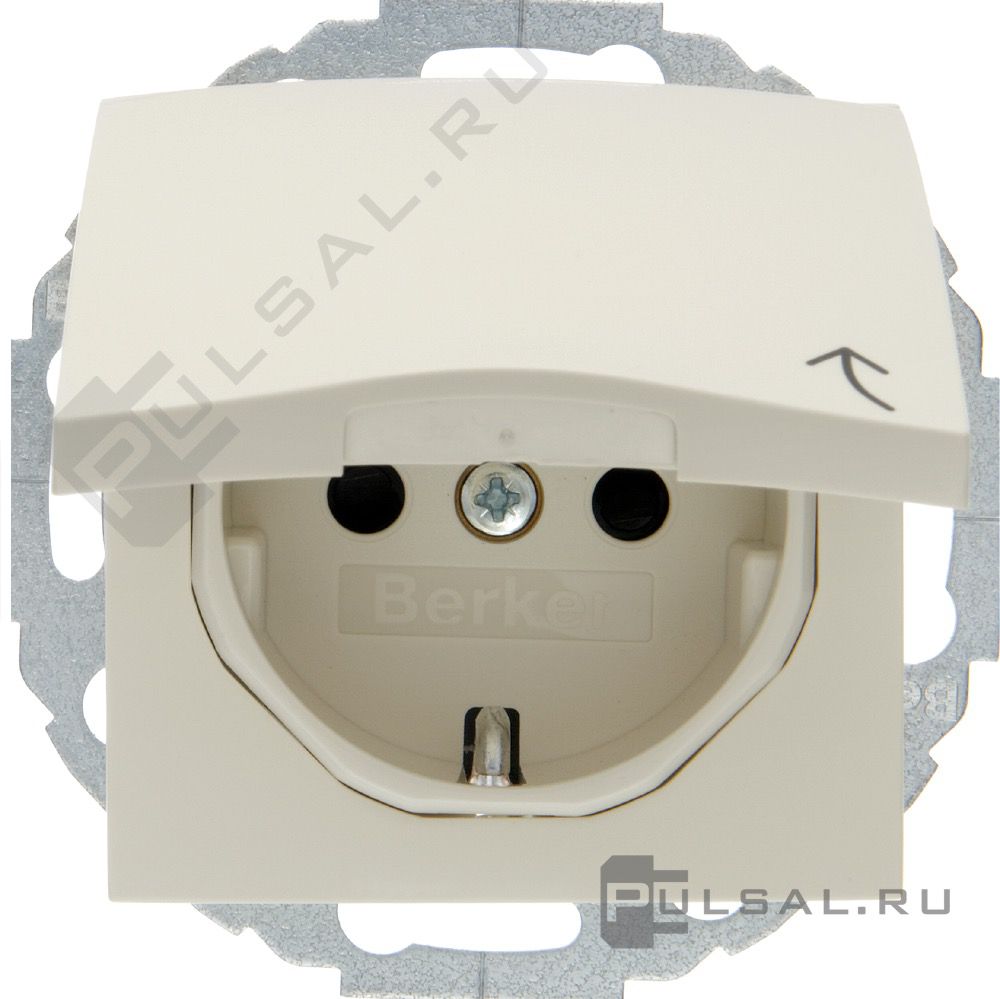 Розетка (механизм внутри поворачивается) S.1, со шторками, с крышкой, с заземлением, одинарная, безвинтовые клеммы, цвет - бежевый глянцевый