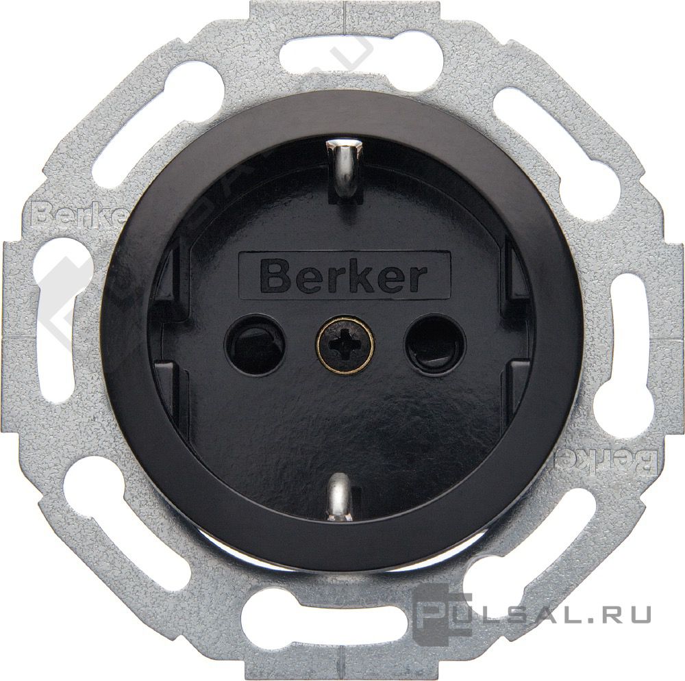 Розетка 1930, Glas, без шторок, с заземлением, одинарная, безвинтовые клеммы, цвет - черный глянцевый