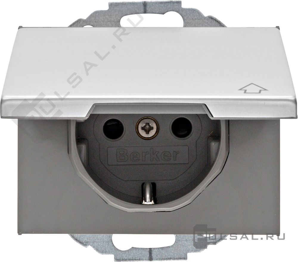 Розетка (механизм можно повернуть на 45 град.) K.5, со шторками, с крышкой, с заземлением, одинарная, безвинтовые клеммы, цвет - алюминий