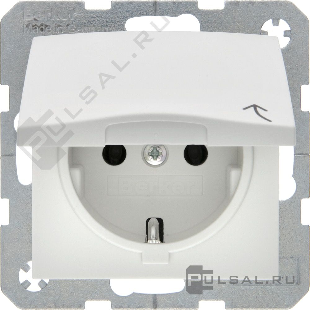 Розетка S.1, B.3, B.7, без шторок, с крышкой, с заземлением, одинарная, безвинтовые клеммы, цвет - белый матовый