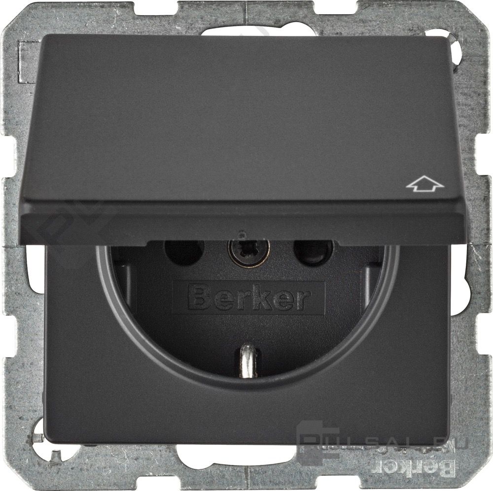 Розетка Q.1, Q.3, Q.7, со шторками, с крышкой, с заземлением, одинарная, безвинтовые клеммы, цвет - антрацит бархат