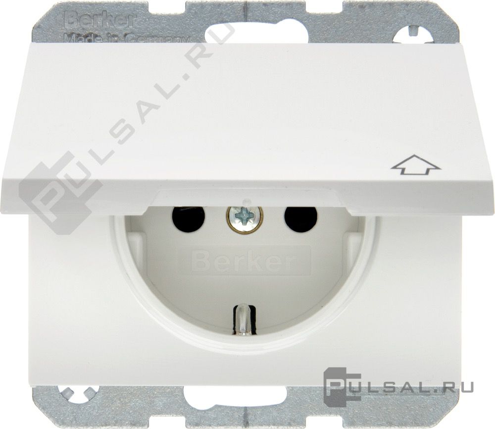 Розетка K.1, со шторками, с крышкой, с заземлением, одинарная, безвинтовые клеммы, цвет - белый глянцевый