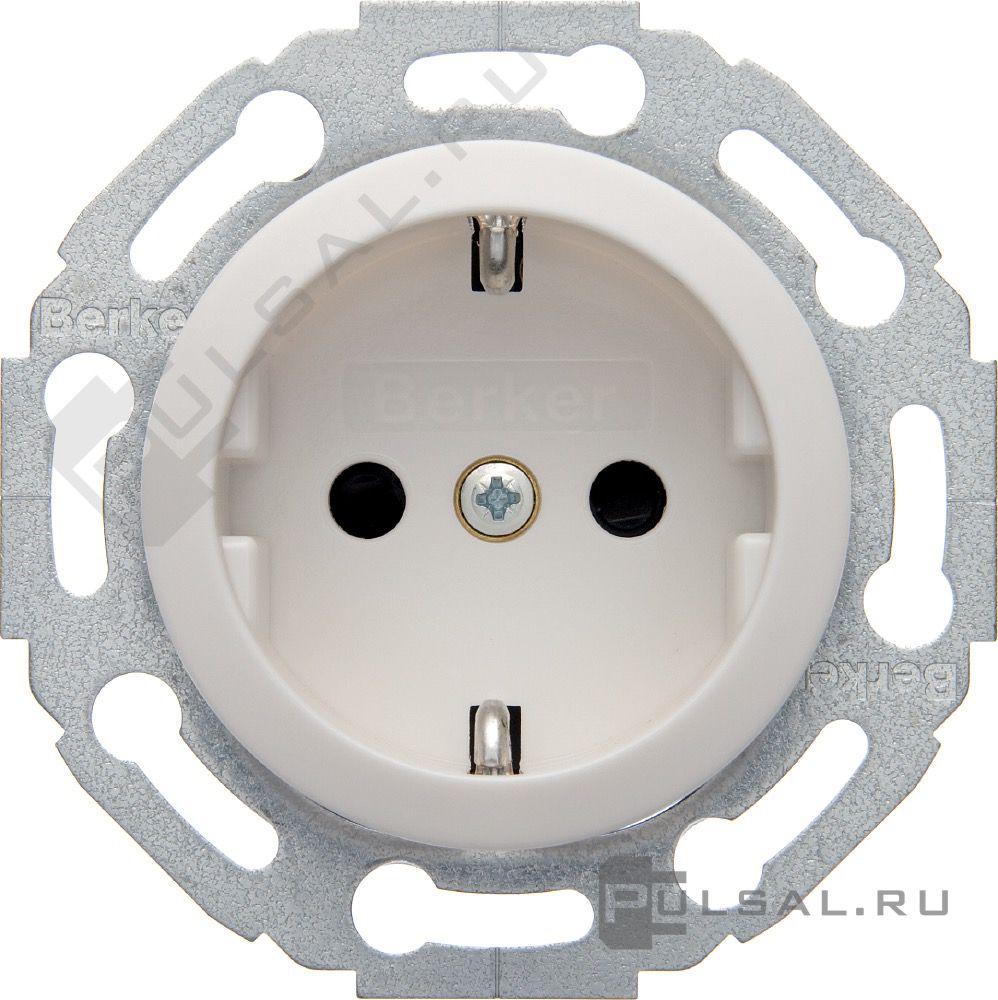 Розетка 1930, Glas, со шторками, с заземлением, одинарная, безвинтовые клеммы, цвет - белый глянцевый