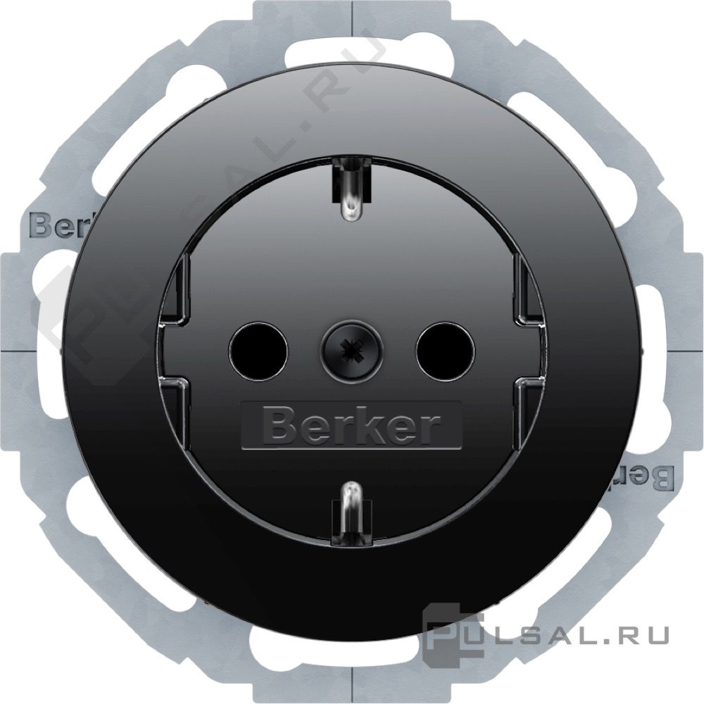 Розетка R.Classic, со шторками, с заземлением, одинарная, безвинтовые клеммы, цвет - черный глянцевый