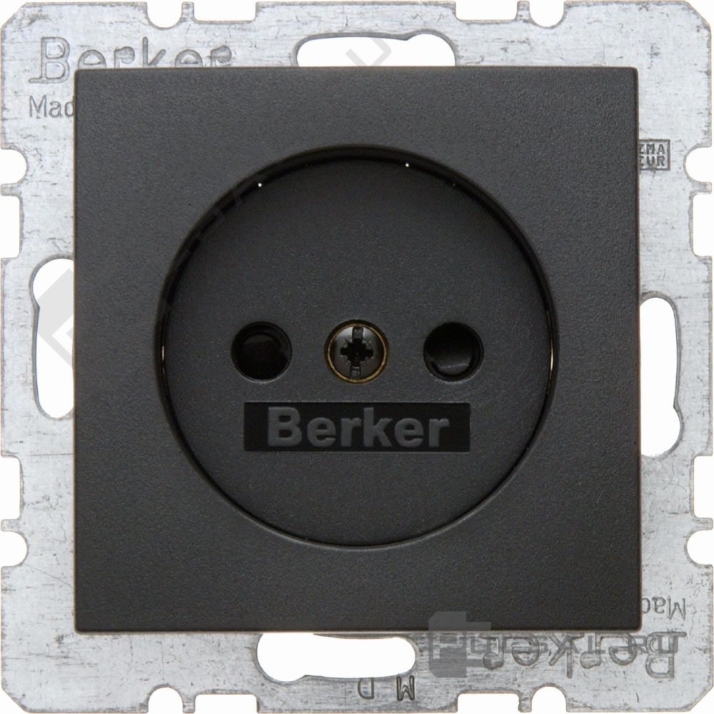 Розетка B.3, B.7, со шторками, без заземления, одинарная, безвинтовые клеммы, цвет - антрацит матовый