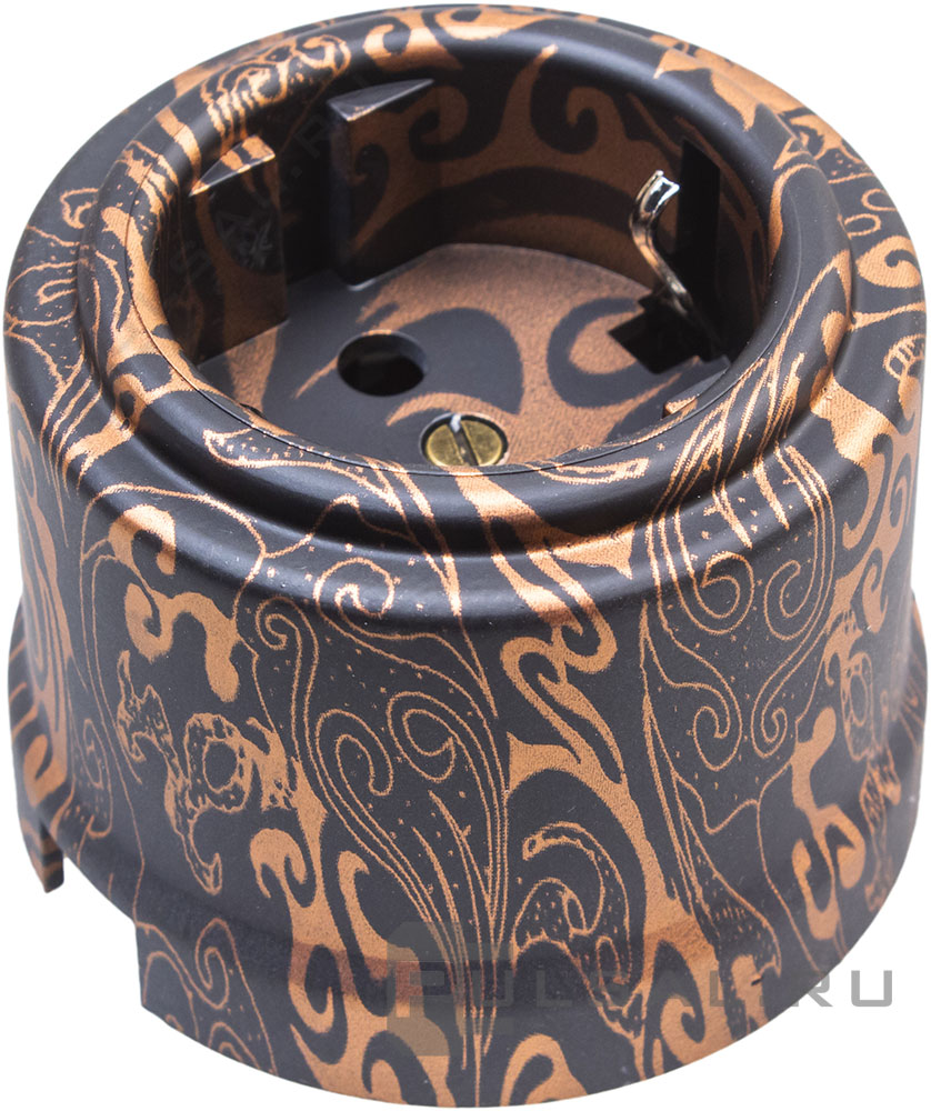 Розетка Лизетта, без шторок, с заземлением, одинарная, винтовые клеммы, цвет - античная медь