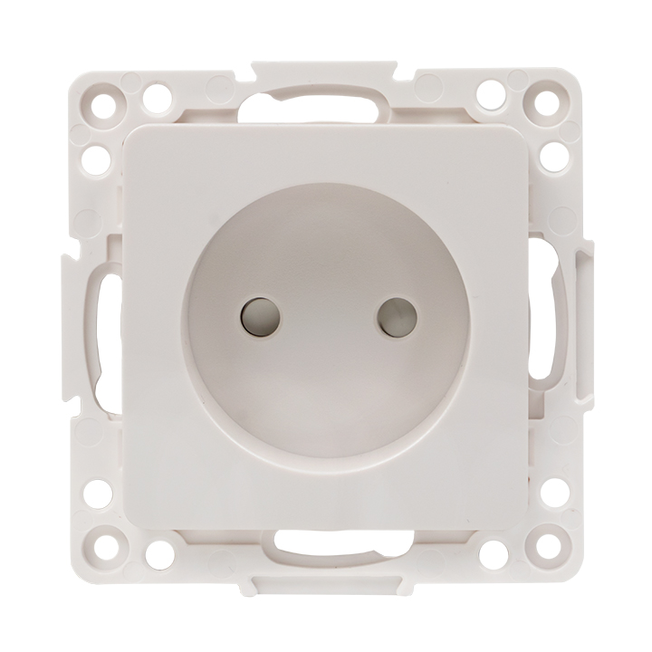 Розетка 10А Стокгольм, со шторками, без заземления, одинарная, безвинтовые клеммы, цвет - белый