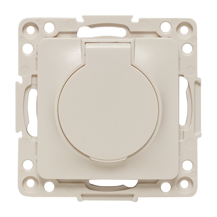 Розетка Стокгольм, со шторками, с крышкой, с заземлением, одинарная, безвинтовые клеммы, цвет - белый
