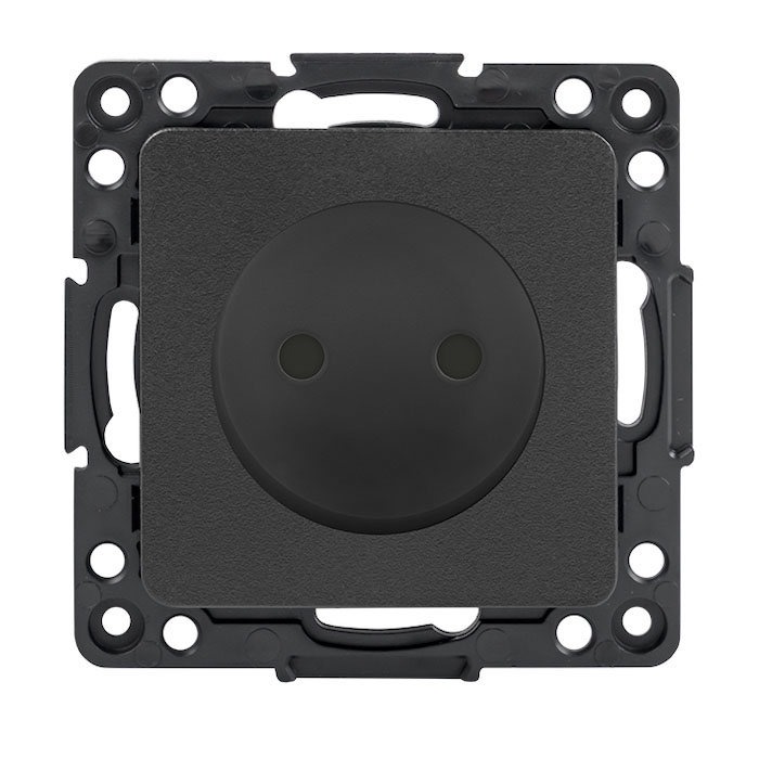 Розетка 10А Стокгольм, со шторками, без заземления, одинарная, безвинтовые клеммы, цвет - черный
