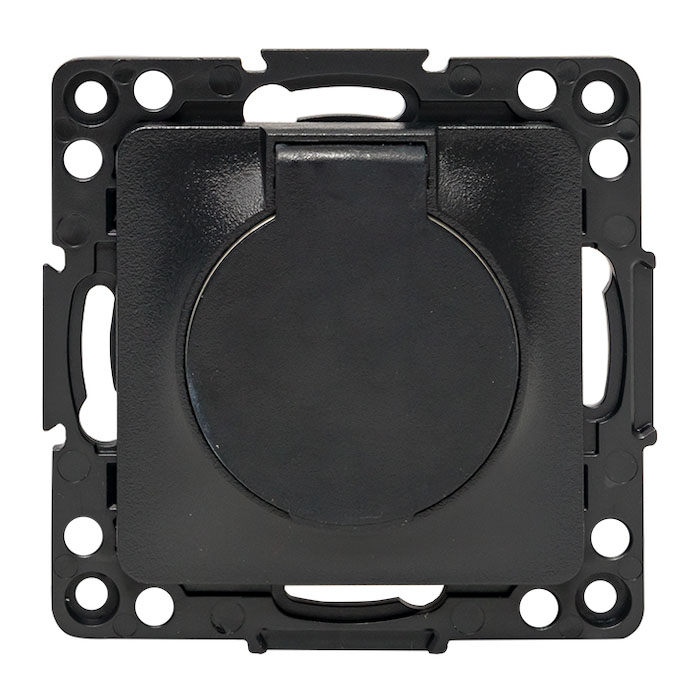 Розетка Стокгольм, со шторками, с крышкой, с заземлением, одинарная, безвинтовые клеммы, цвет - черный