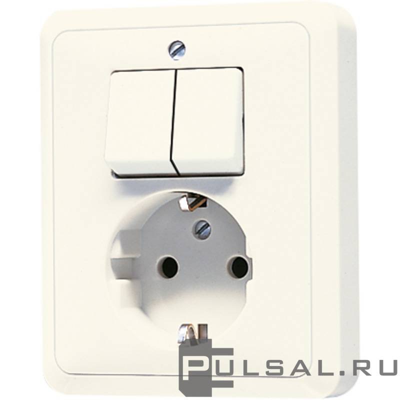 Блок розетки и выключателя CD 500, без шторок, с заземлением, одинарная, винтовые клеммы, цвет - слоновая кость