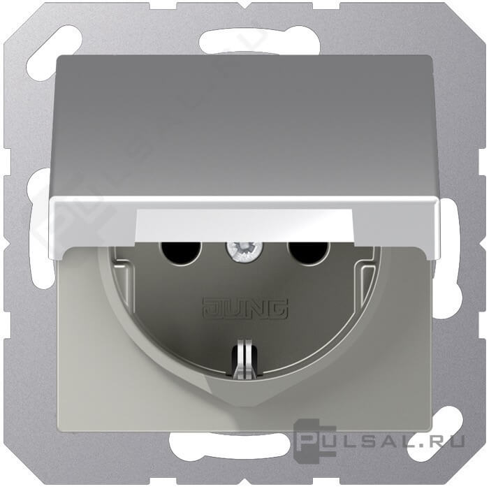 Розетка A VIVA, A creation, A 550, A flow, со шторками, с крышкой, с заземлением, одинарная, безвинтовые клеммы, цвет - алюминий