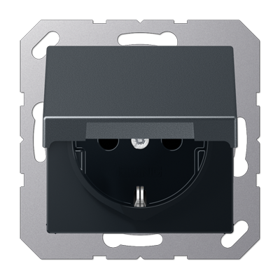 Розетка A VIVA, A creation, A 550, A flow, AS 500, со шторками, с крышкой, с заземлением, одинарная, безвинтовые клеммы, цвет - антрацит матовый