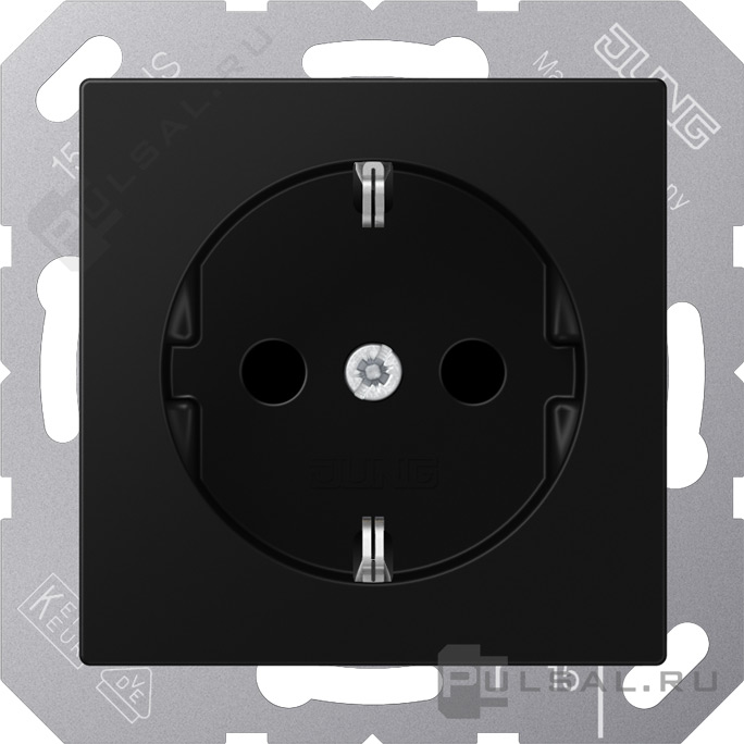 Розетка A VIVA, A creation, A 550, A flow, без шторок, с заземлением, одинарная, безвинтовые клеммы, цвет - черный матовый