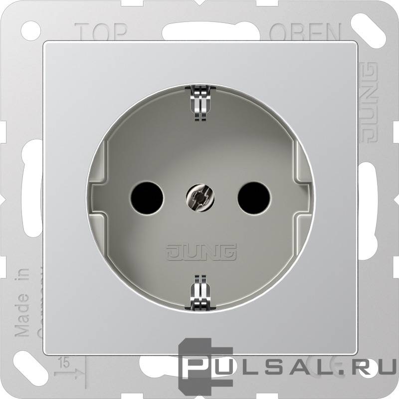 Розетка A VIVA, A creation, A 550, A flow, со шторками, с заземлением, одинарная, безвинтовые клеммы, цвет - алюминий