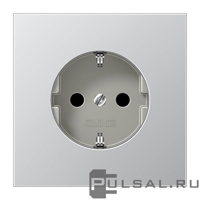 Розетка LS 990, LS 1912, LS plus, LS ZERO, LS-design, FD-design, со шторками, с заземлением, одинарная, безвинтовые клеммы, цвет - алюминий