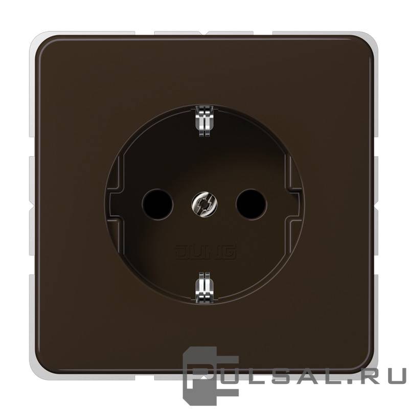 Розетка CD 500, CD ударопрочная, со шторками, с заземлением, одинарная, безвинтовые клеммы, цвет - коричневый