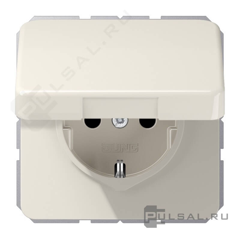 Розетка CD 500, CD ударопрочная, со шторками, с крышкой, с заземлением, одинарная, безвинтовые клеммы, цвет - слоновая кость