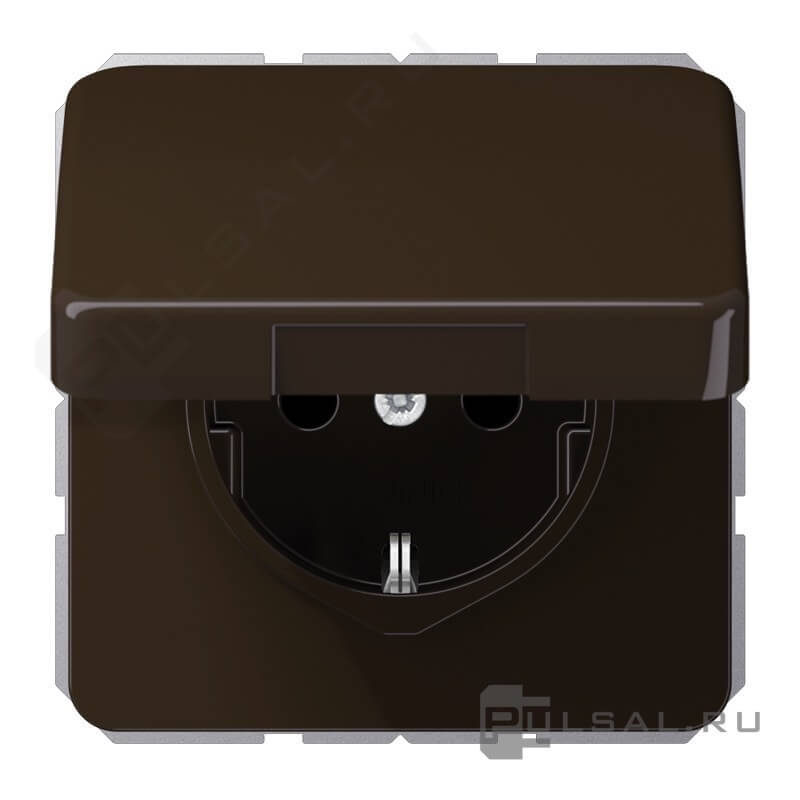 Розетка CD 500, CD ударопрочная, без шторок, с крышкой, с заземлением, одинарная, безвинтовые клеммы, цвет - коричневый