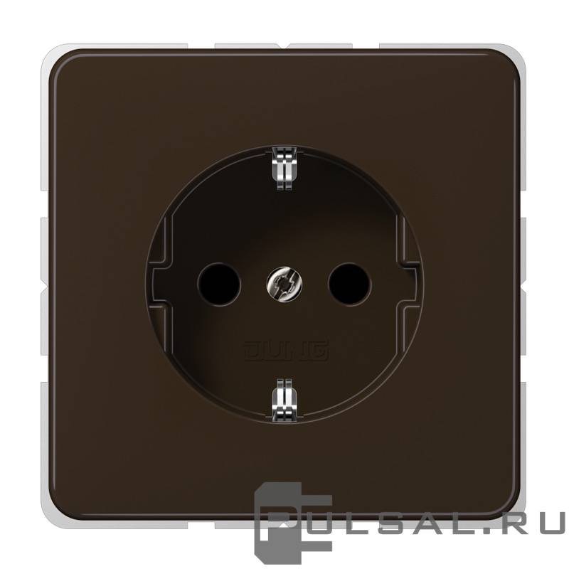 Розетка CD 500, без шторок, с заземлением, одинарная, безвинтовые клеммы, цвет - коричневый
