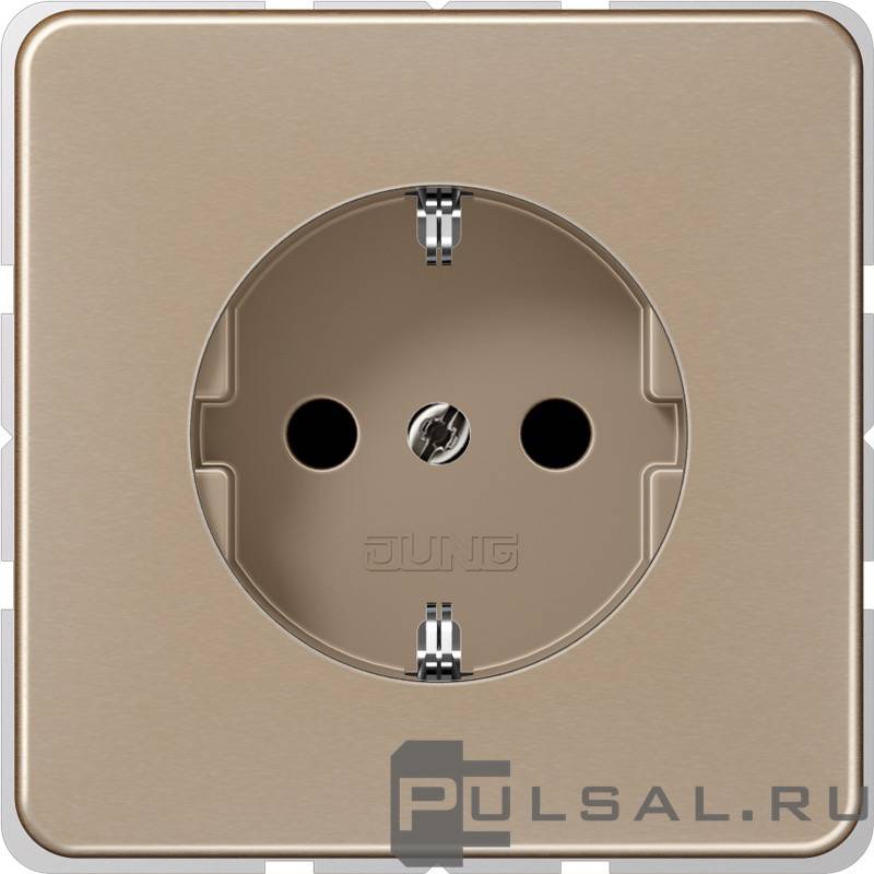 Розетка CD 500, без шторок, с заземлением, одинарная, безвинтовые клеммы, цвет - золотая бронза