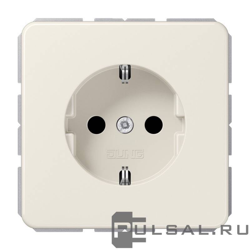 Розетка CD 500, со шторками, с заземлением, одинарная, безвинтовые клеммы, цвет - слоновая кость