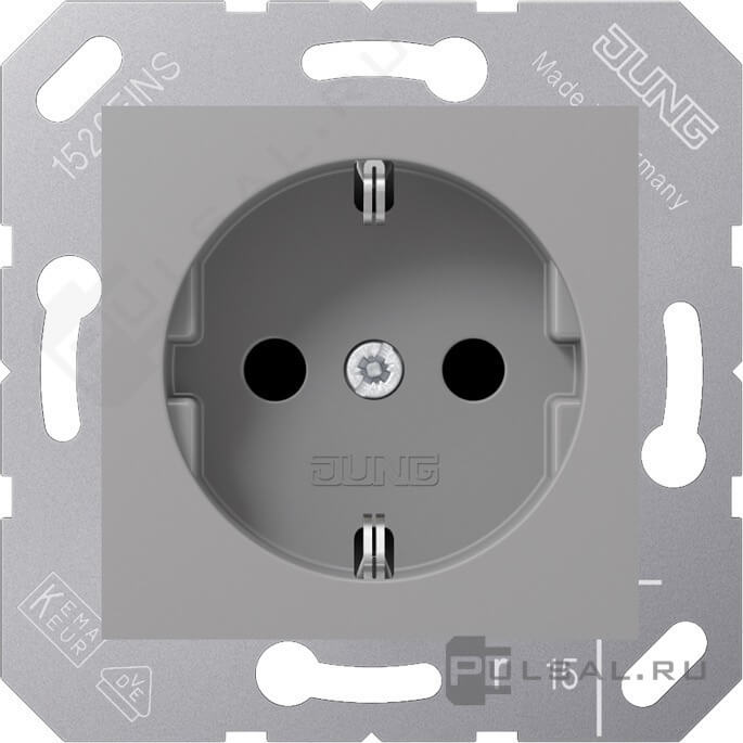 Розетка для установки под откидную крышку CD 500, без шторок, с крышкой, с заземлением, одинарная, безвинтовые клеммы, цвет - платиновый