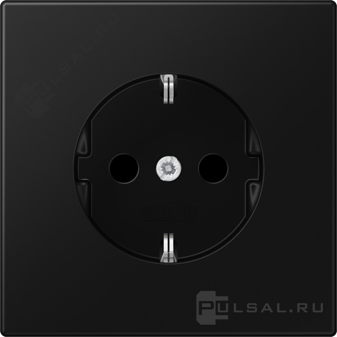 Розетка LS 990, LS plus, LS ZERO, LS-design, FD-design, со шторками, с заземлением, одинарная, безвинтовые клеммы, цвет - черный матовый