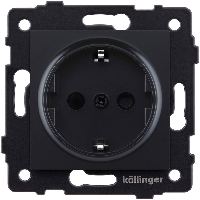 Розетка электрическая Aspekt, Eleganz, Reflex, с заземлением, одинарная, винтовые клеммы, цвет - черный матовый