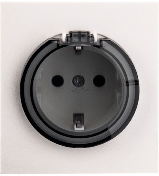 Розетка выполнена с заземлением, а также оснащена защитными шторками и крышкой для безопасности детей и защиты от поражения электрическим током.