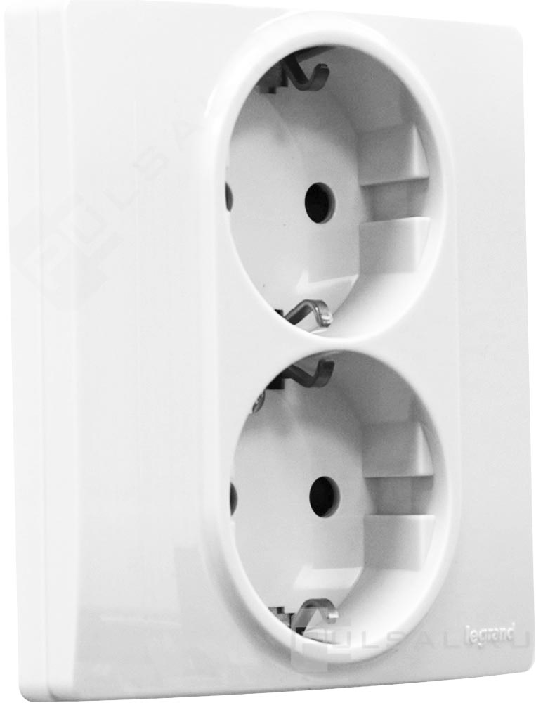 Розетка Etika Plus Etika, со шторками, с заземлением, двойная, безвинтовые клеммы, цвет - белый