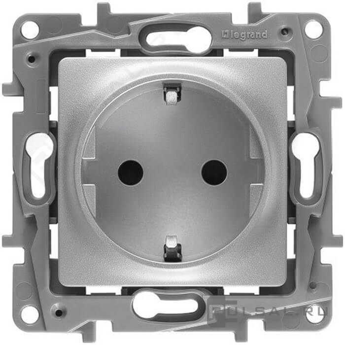 Розетка компьютерная RJ45 Cat.5e (UTP) Etika, одинарная, цвет - алюминий