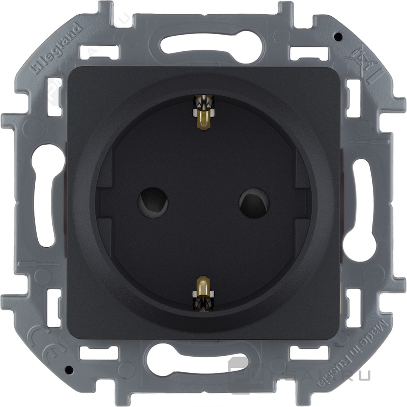 Розетка Inspiria, со шторками, с заземлением, одинарная, винтовые клеммы, цвет - антрацит