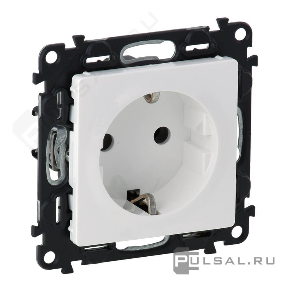 Розетка Valena Life, со шторками, с заземлением, одинарная, безвинтовые клеммы, цвет - белый