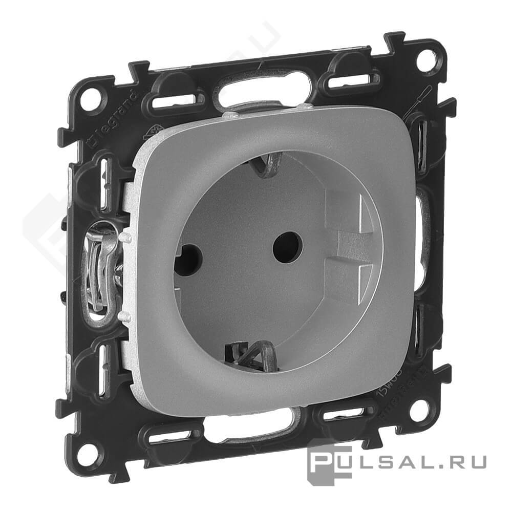 Розетка Valena Allure, со шторками, с заземлением, одинарная, безвинтовые клеммы, цвет - алюминий