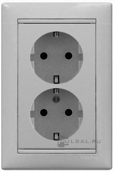 Розетка Valena, со шторками, с заземлением, двойная, винтовые клеммы, цвет - алюминий
