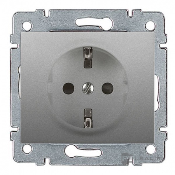 Розетка Galea Life, без шторок, с заземлением, одинарная, безвинтовые клеммы, цвет - алюминий
