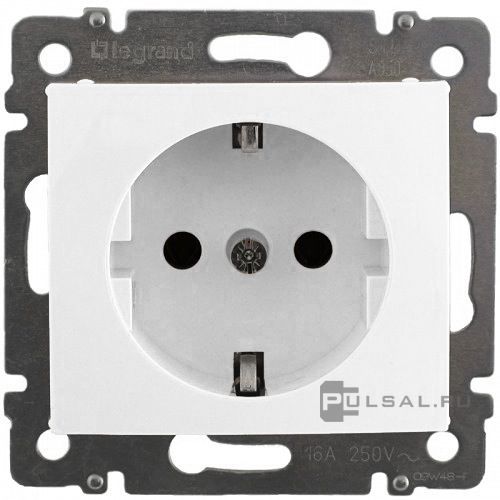 Розетка Valena, со шторками, с заземлением, одинарная, безвинтовые клеммы, цвет - белый