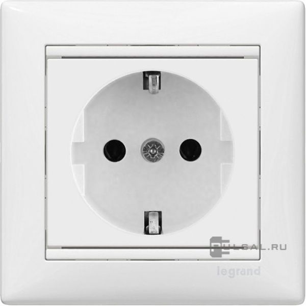 Розетка с рамкой Valena, без шторок, с заземлением, одинарная, винтовые клеммы, цвет - белый
