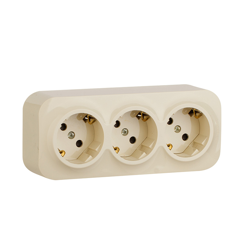 Розетка 45° Quteo, со шторками, с заземлением, тройная, винтовые клеммы, цвет - слоновая кость