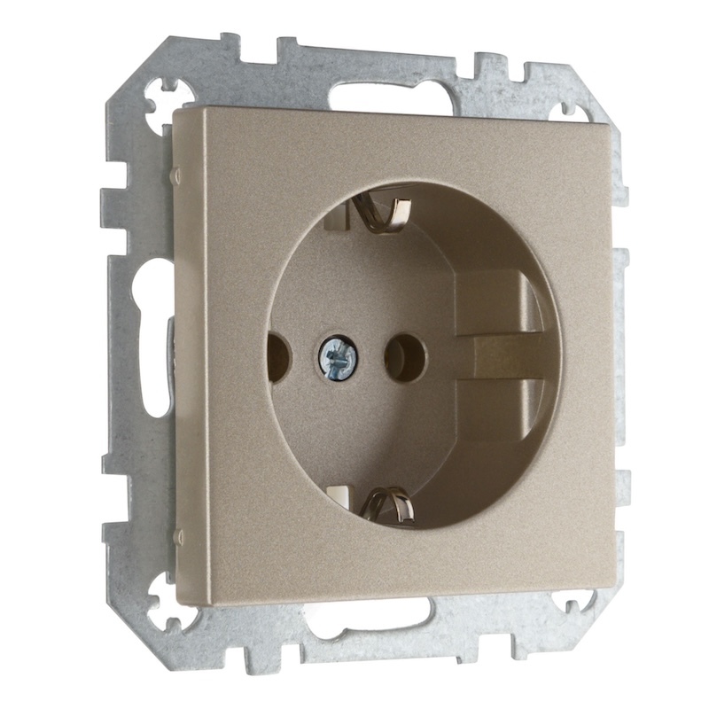 Розетка Epsilon, Retro Liregus, без шторок, с заземлением, одинарная, безвинтовые клеммы, цвет - шампань